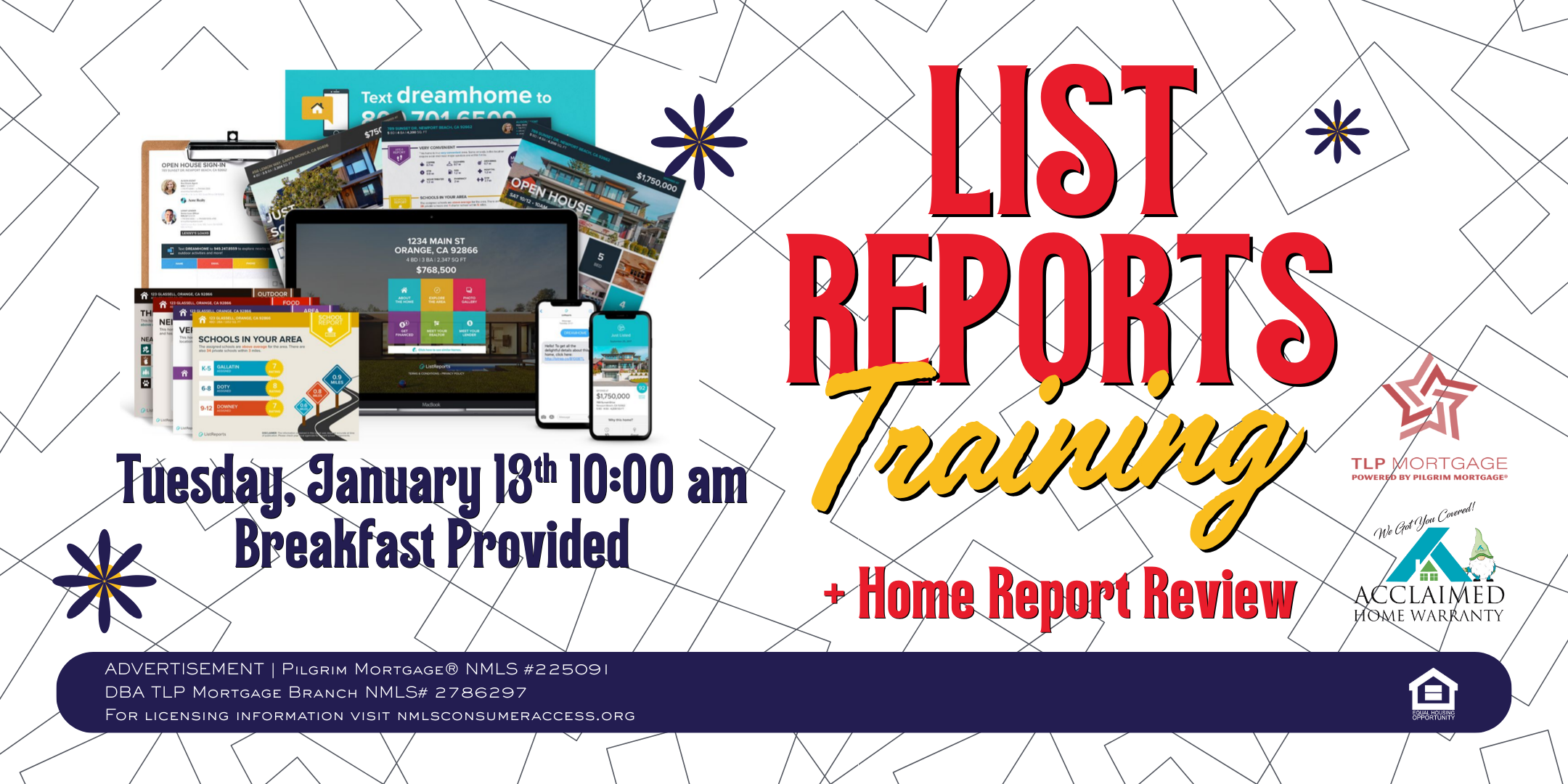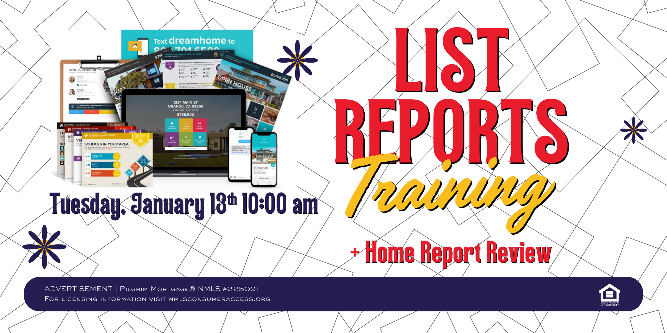 In this class, we’ll walk through how to navigate Home Report, add and manage clients, and monitor results so you can clearly see how your marketing is performing. We’ll also dive into ListReports, where you’ll learn how to pair with your loan officer, share co-branded marketing assets, and fully utilize our built-in lead capture technology to generate and nurture opportunities.